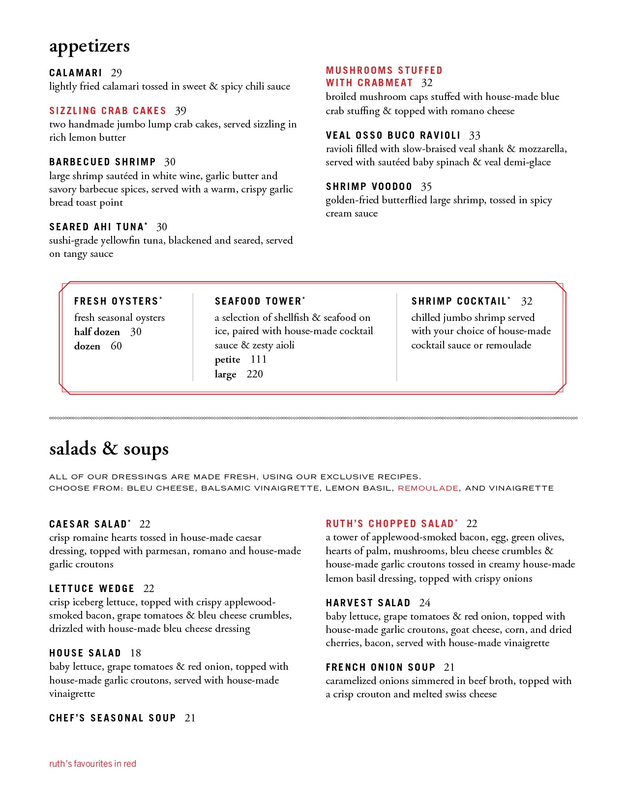 From appetizer to dessert, the menu at Ruth’s Chris Steak House is carefully curated to ensure your last bite is as good as your first.